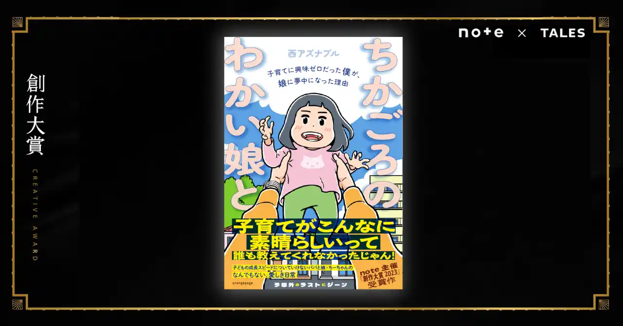創作大賞に応募したのは、娘との何気ない日常を描いたこの記録を、どこかに届けたいと思ったからでした。受賞の知らせを聞いたときは、そうした日常が誰かに届いたことへの驚きと喜びを感じました。 |