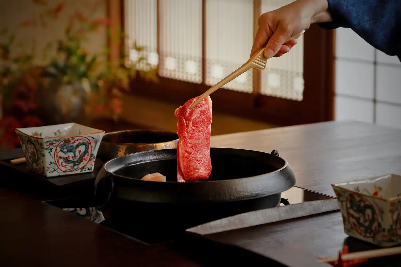 【炊き立て土鍋ご飯と但馬玄の旨味をすき焼きで堪能】