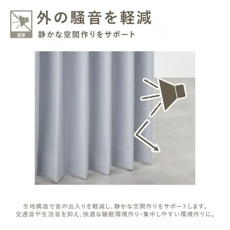 外の光を一切通さない「完全遮光」と、気になる外の音を軽減する「遮音機能」を兼ね備えた、 |