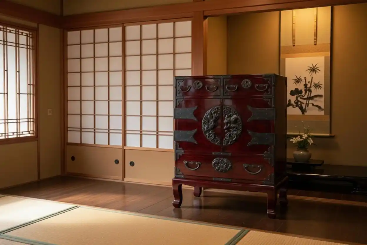 岩谷堂箪笥は、岩手県の伝統民芸家具です。重厚な鉄金具・分厚い欅材・民芸調デザイン・重ね箪笥構造が特徴で、古民家再生や和モダン住宅との相性が良く、近年中古市場で再評価されています。 |