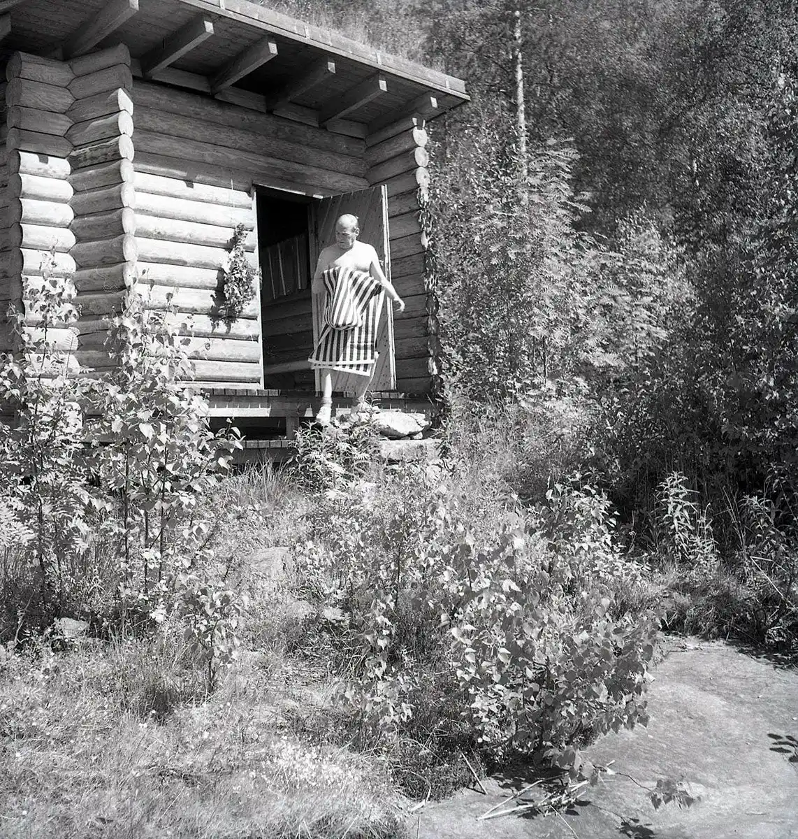 ムーラッツァロの実験住宅(コエタロ)でサウナを楽しむアルヴァ・アアルト、1960年代、Photo: Heikki Havas |