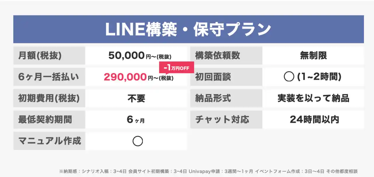 一般的なLINE構築代行では初期費用30万円以上かかるケースもあります。 エルサポは初期費用ゼロ、月額5万円から導入可能。 年間契約の場合は割引も用意し、継続しやすい設計としています。 |
