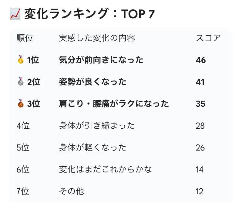 | まず、体が疲れにくくなりメンタルが安定したこと。 | |||||||||||||||