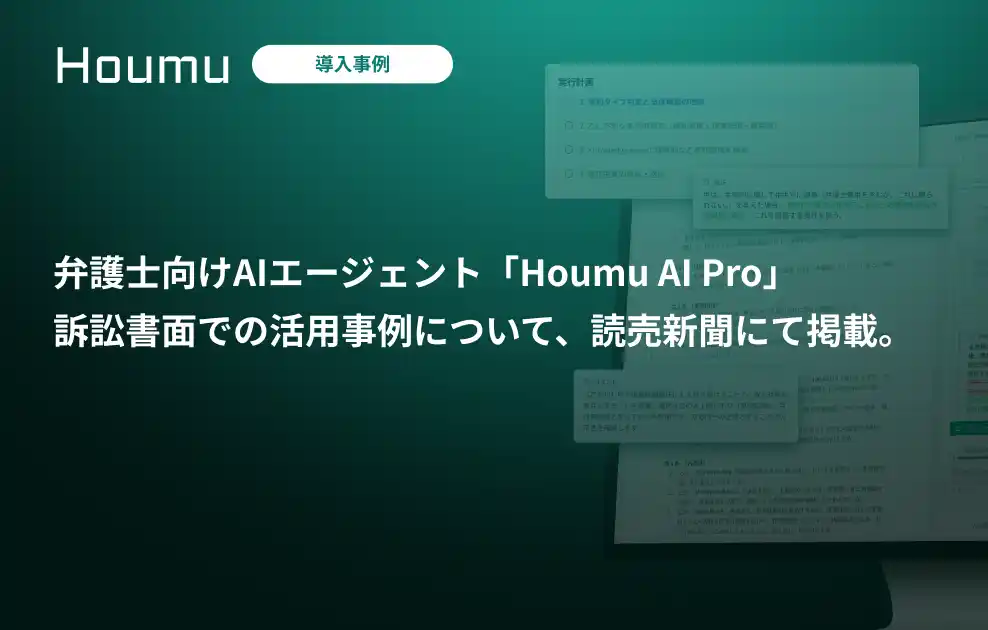 法務AIエージェント「Houmu」を提供する株式会社KenRi(ケンリ、以下「KenRi」といいます。)は、弁護士業務に特化したAIエージェントサービス「Houmu AI Pro」を提供しております。 この度、「読売新聞」による、日本の弁護士制度誕生から150年を迎えたことを受けて開始された、弁護士業界の現状と未来を展望する連載企画「弁護士150年」にて、弁護士によるリーガルテックの活用事例として、弊社サービスを活用した事例を掲載いただきました。 [弁護士150年]<1>訴状原案 AIで1分 リスク前提 弁護士が最終責任 |