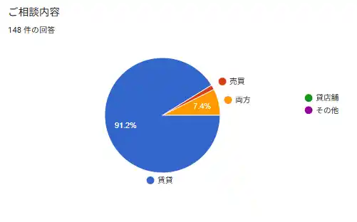 賃貸物件と売買物件の紹介頻度は等しいが、圧倒的に賃貸の相談が多く猫と暮らせる賃貸物件が求められていることがうかがえる。 |