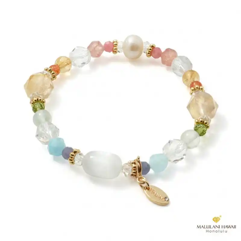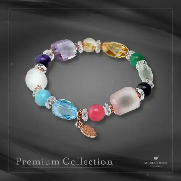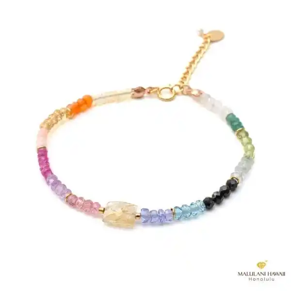 幸運のハワイアンレインボーを、上質な石で表現した限定ブレスレット。 愛、金運、魅力、才能開花、健康、厄除けのお守りに。 |