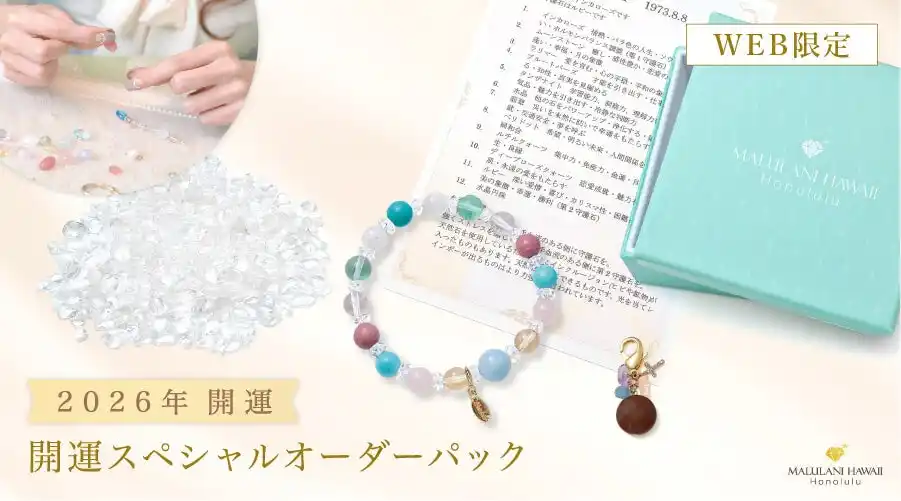 ハワイ発祥の天然石アクセサリーブランド「マルラニハワイ」より、前向きな気持ちで一年を スタートさせたい方に向けて開運をイメージしたパワーストーンのお守りをご紹介いたします。 |