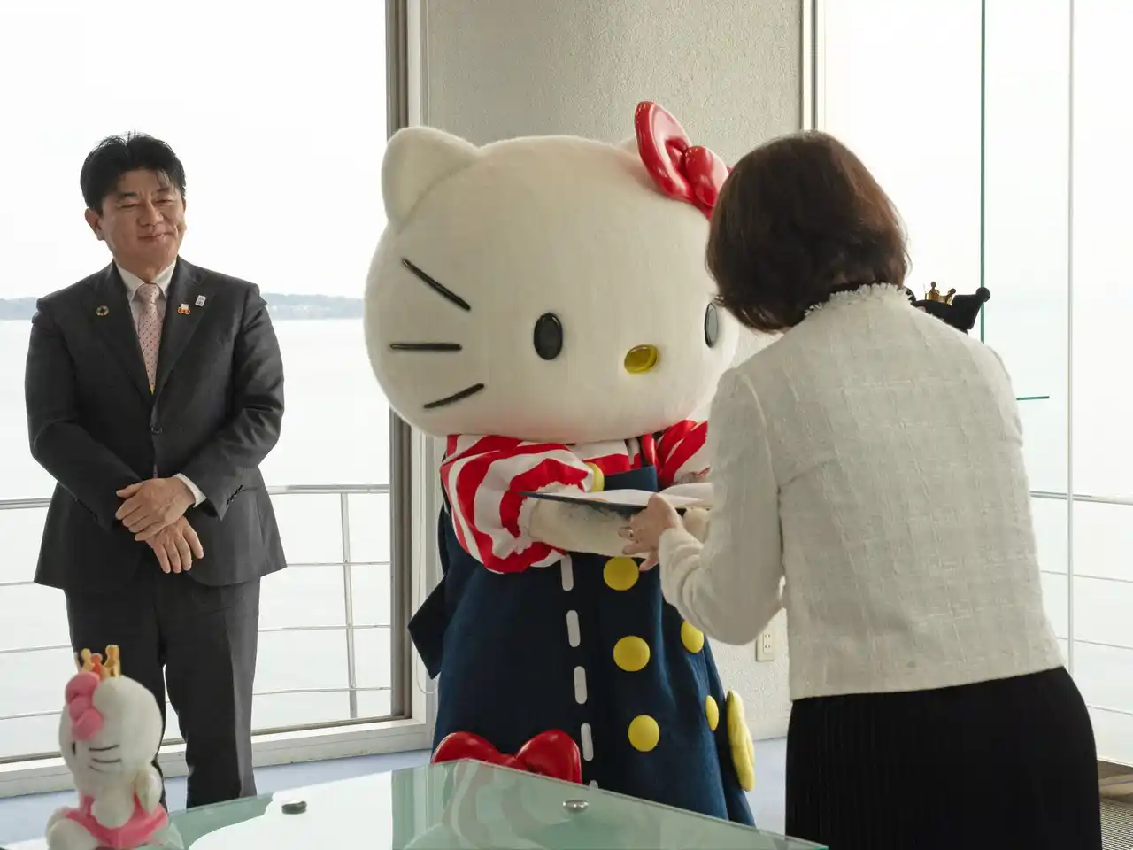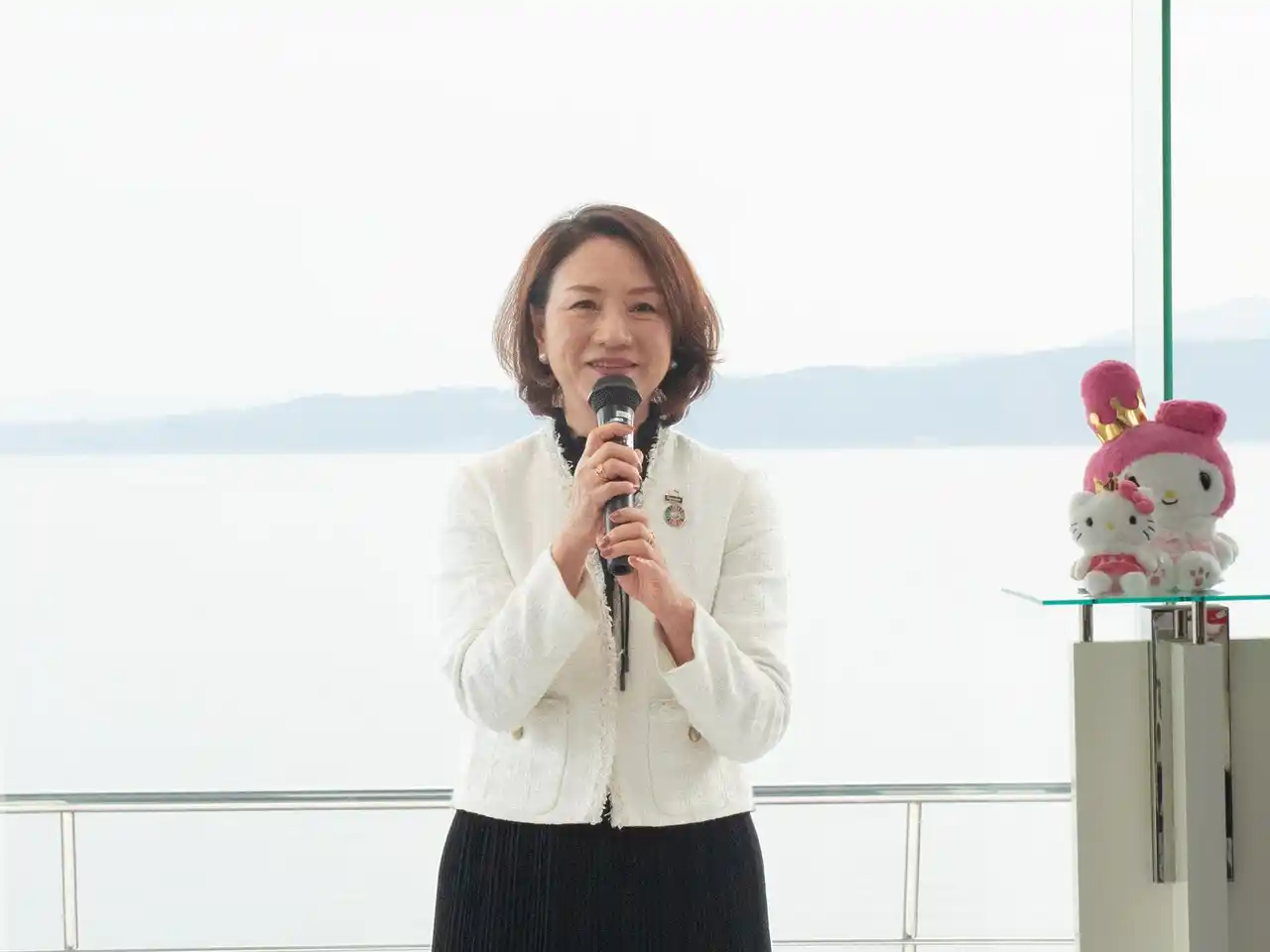 締結式には、スペシャルゲストとしてサンリオの人気キャラクター「ハローキティ」も出席。協定式の最後には、両代表から地域への想いと今後の展望が語られました。日出町