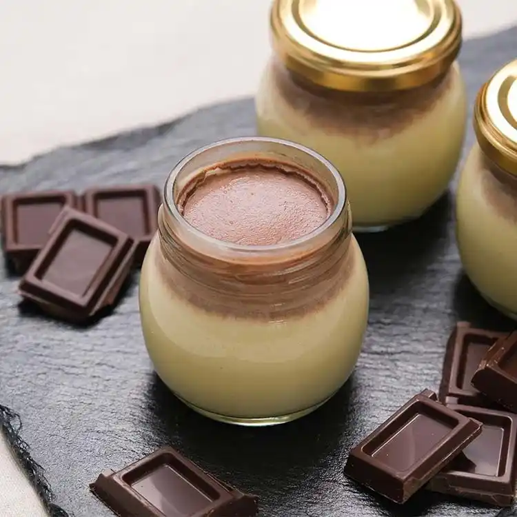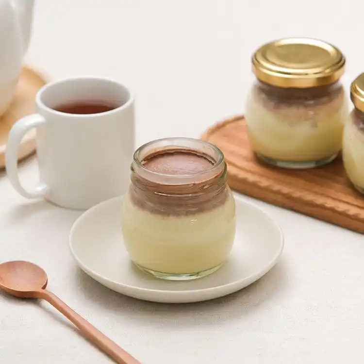 五感を満たす食感と香りの余韻:スプーンを入れるととろりとゆれる、繊細でなめらかな口どけが特長です。きび糖のまろやかな甘さと卵のふくよかなコクが広がった後、仕上げにかけたカカオソースのほろ苦い香りが鼻に抜け、味わいに深い奥行きを与えます。 |