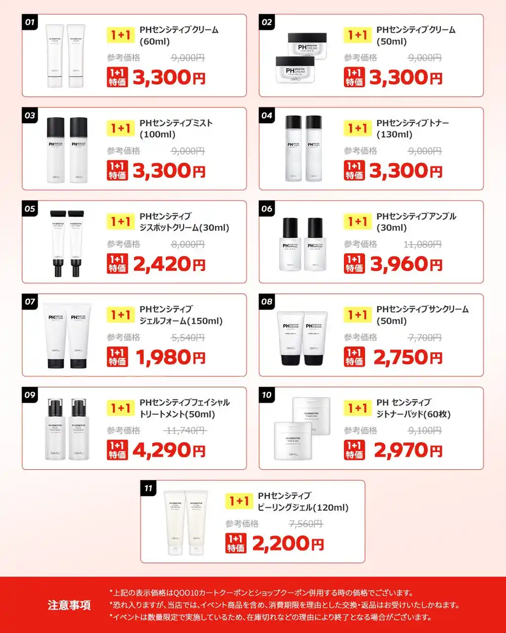 | 株式会社サムシックコスメティックジャパン(本社:東京都渋谷区、代表取締役社長:ユ・ソンヒョク)が展開する韓国発スキンケアブランド「SAM'U(サミュ)」は、2026年2月27日(金)17:00から3月11日(水)23:59まで開催されるQoo10「メガ割」に参加し、人気のPHセンシティブラインを中心とした特別プロモーションを実施いたします。 | |||||||||