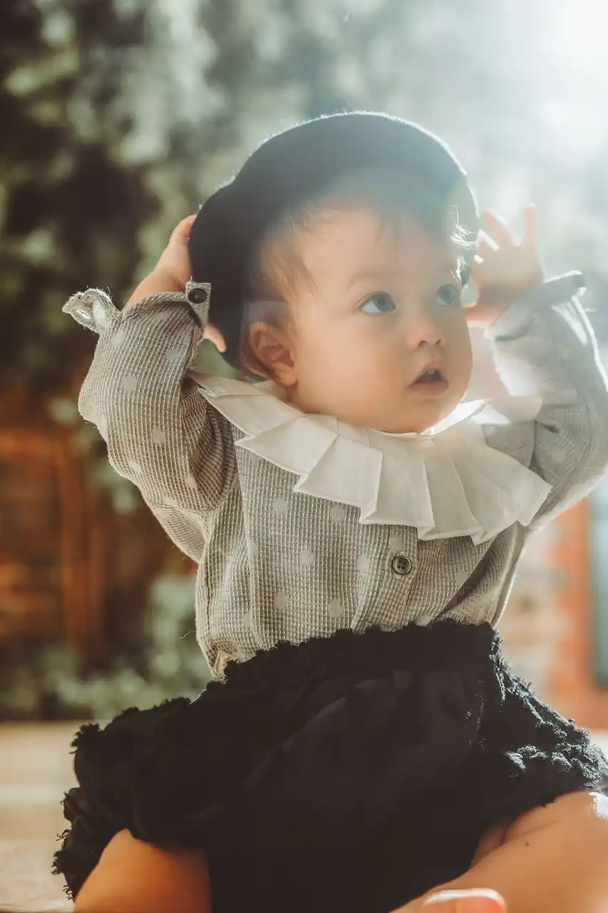 お子様が動くたびに表情を変える、洗練されたコーディネートを楽しめます。 |
