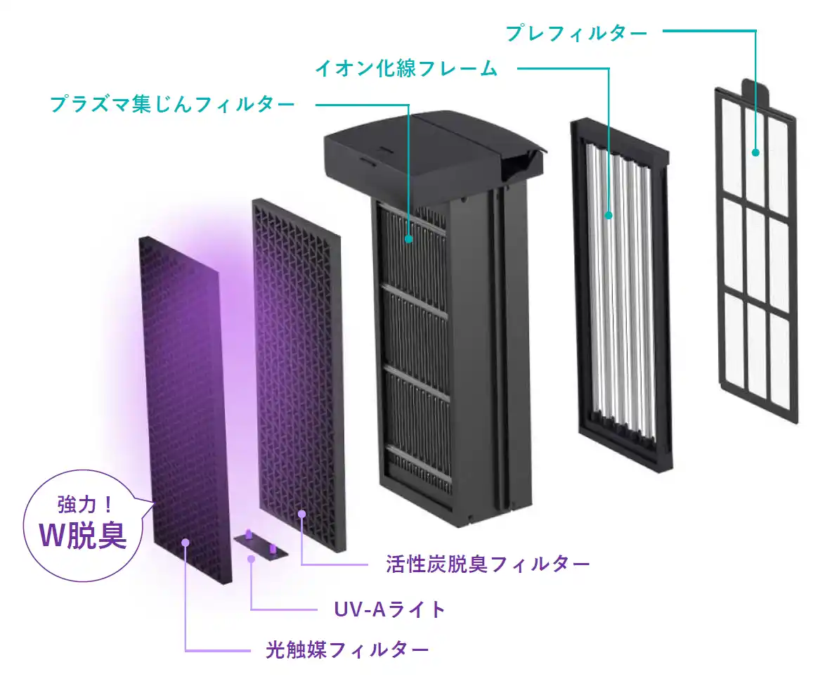 | 3.徹底浄化。4層フィルター×UV-Aライトの「W脱臭システム」 | |||||||||||||||||||