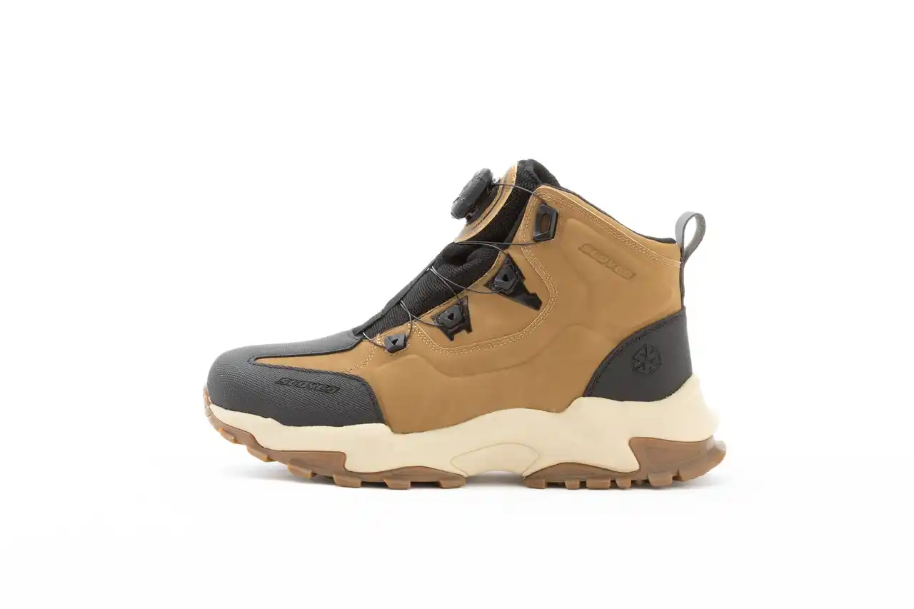 まるで軽登山やキャンプ向けのトレッキングシューズのようなスタイルは、従来のライディングシューズには見られない特徴です。 |
