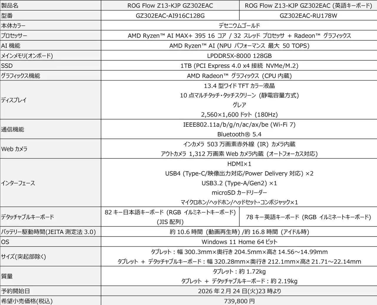※今回発表のROG Flow Z13-KJP GZ302EACの詳細スペックはこちらからご確認ください。 |