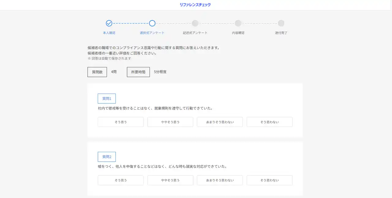 ▼回答者のリファレンスチェック画面 |