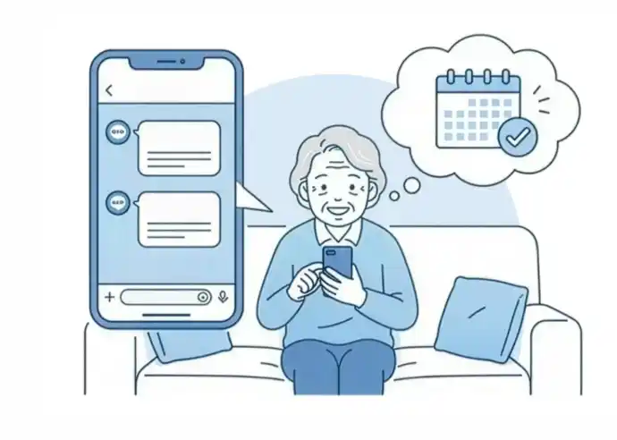 3. 訪問のない日もAIが「見守り」。ケアの質と定着率を向上 訪問がない日でもAIが定期的にメッセージを送り、利用者様の体調変化をモニタリングします。「蕁麻疹が出た」「食欲がない」といった細かなリスクを事前にキャッチしてヘルパーへ共有することで、当日の最適な人員配置や質の高いケアを実現し、利用者様の継続利用(定着率)を促進します。 |