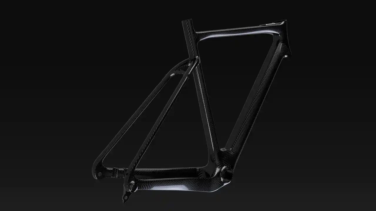 T47規格、UDH、スルーアクスル。 最新スポーツバイクと同一規格のフルカーボンフレームを設計し、その性能を損なわない形でモーターと制御システムを開発しました。 |