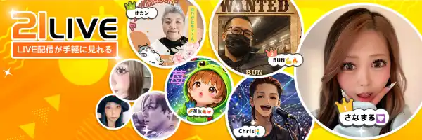 21LIVE=「思い通りの“人生”が、ココから始まる」古代数秘術において「21」とは人生が思い通りになっていく状態を表すエンジェルナンバー。「LIVE」は英語で人生を。なりたい自分になれる配信場所、それが21LIVE!