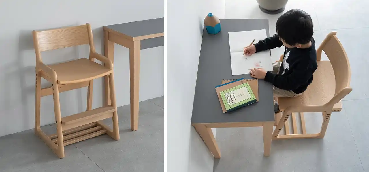 大人になっても使える普遍的なデザインと機能性。キッズデスクはワークデスクへ、キッズチェアはワークチェアへ、ランドセルラックは書斎棚に。体格や時代が変わっても変わらない使い心地を提案します。 |