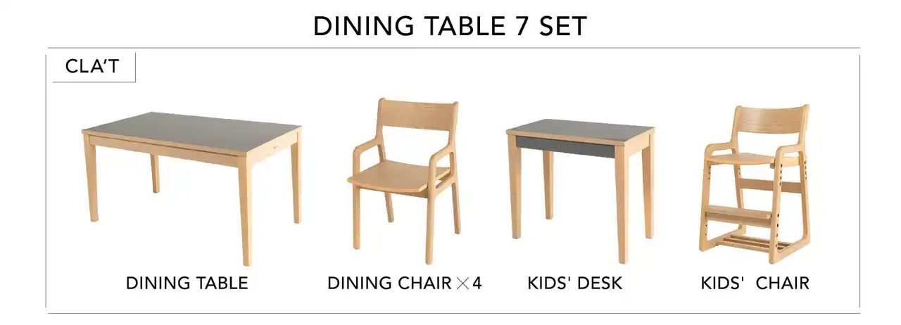 セット内訳:ダイニングテーブル+ダイニングチェア4脚+キッズデスク+キッズチェア1脚 |
