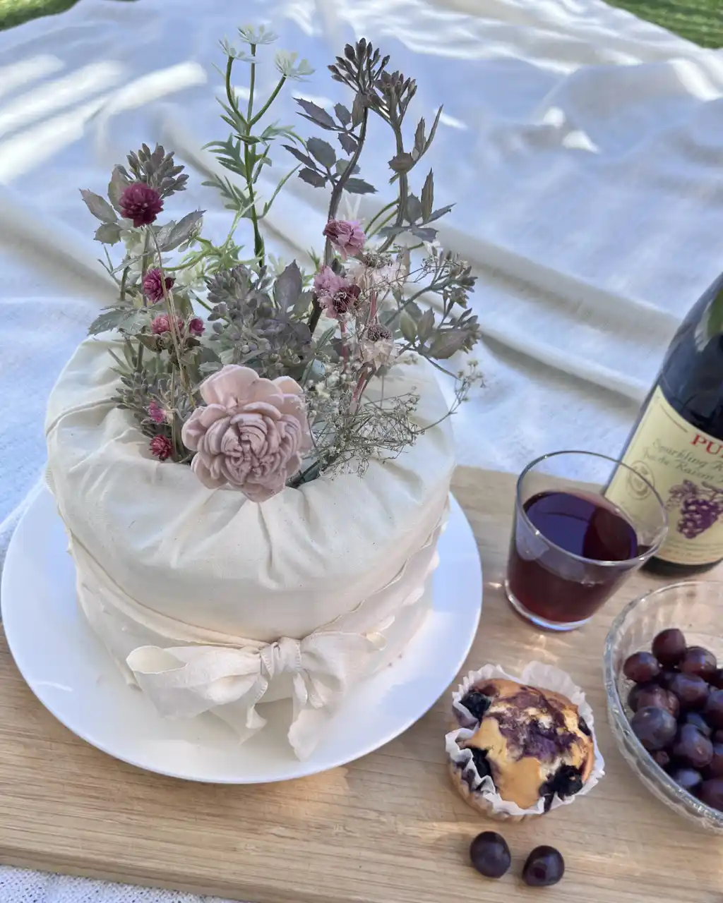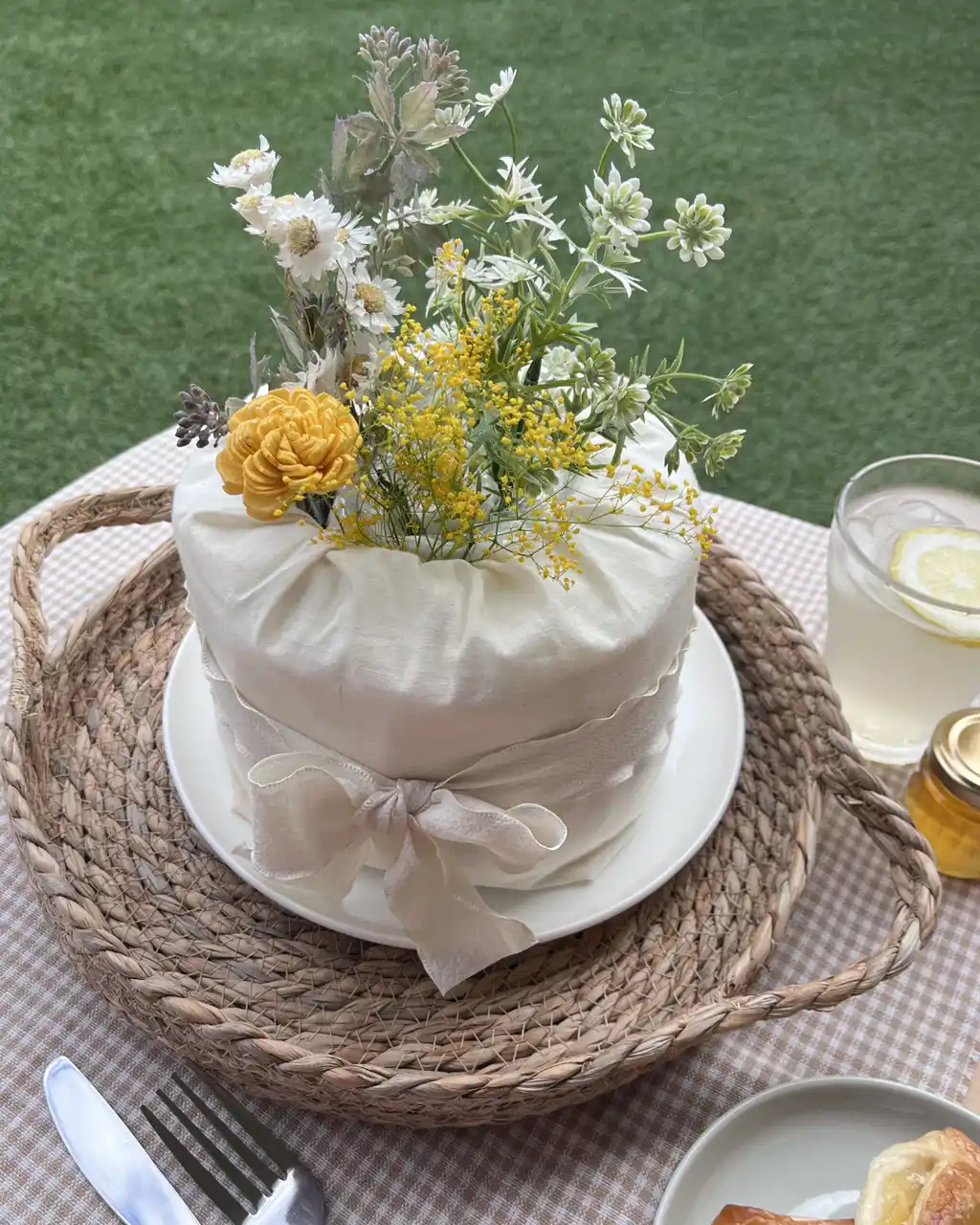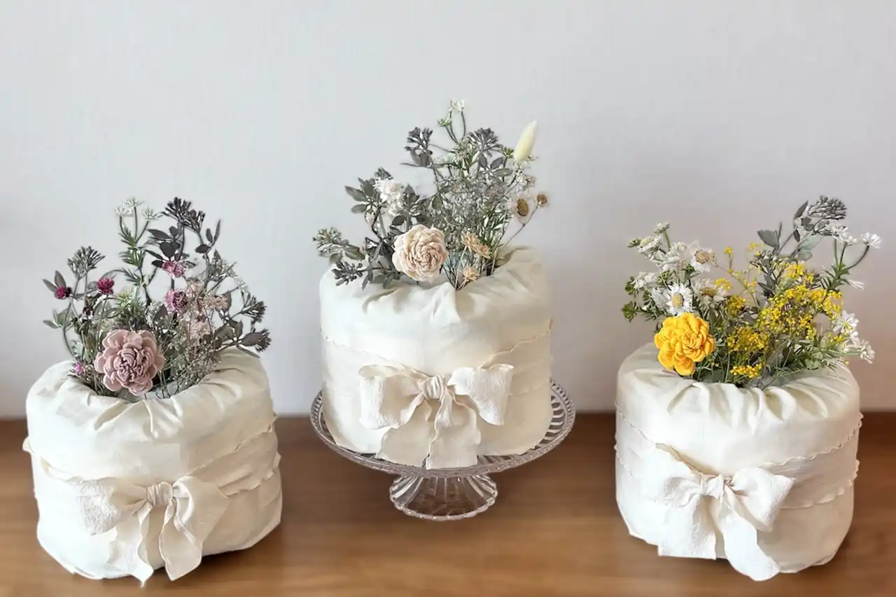 3. ケーキを解くとオリジナルポーチとブーケに変身。ブーケはアロマを垂らして香りを楽しめます。