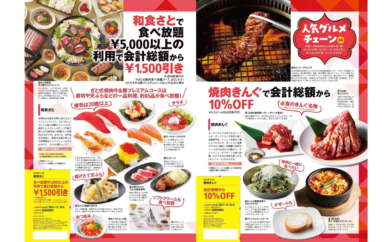 ・和食さとで「食べ放題¥5,000以上の利用で会計総額から¥1,500引き」 |