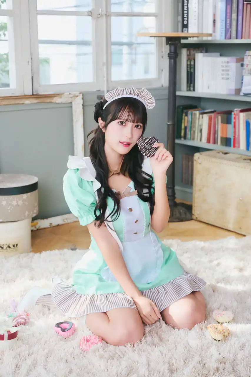 | ミントカラー×ブラウンカラーの甘めなメイド服で、肩フリルをあしらったベルトデザインが大人っぽガーリーな印象をつくります。 | ||||||||||||||