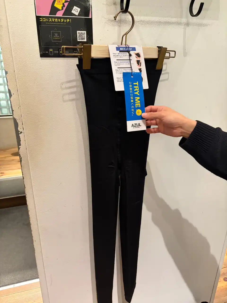 そこで本取り組みでは、AZUL BY MOUSSY様の一部店舗にて「スリムガードル」および「スリムレギンス Premium」を展開し、試着室にて着用感を確認できるサンプルをご用意しました。
