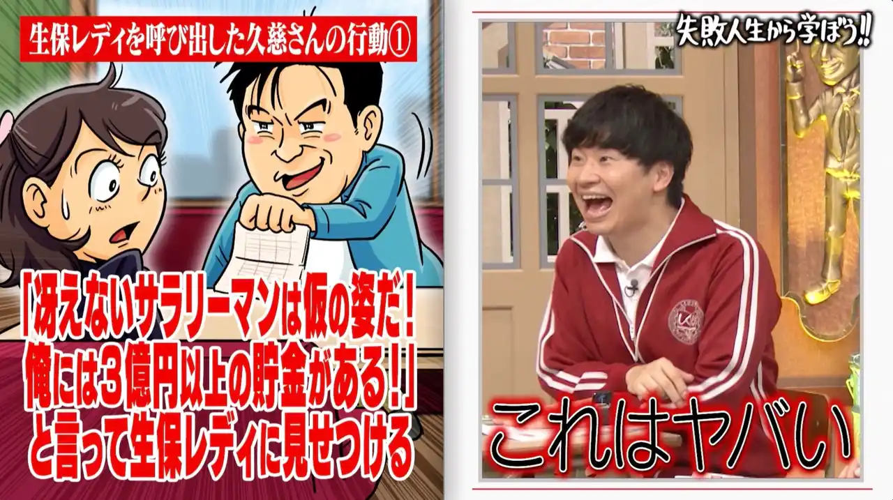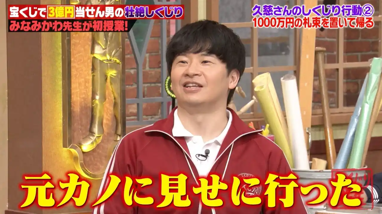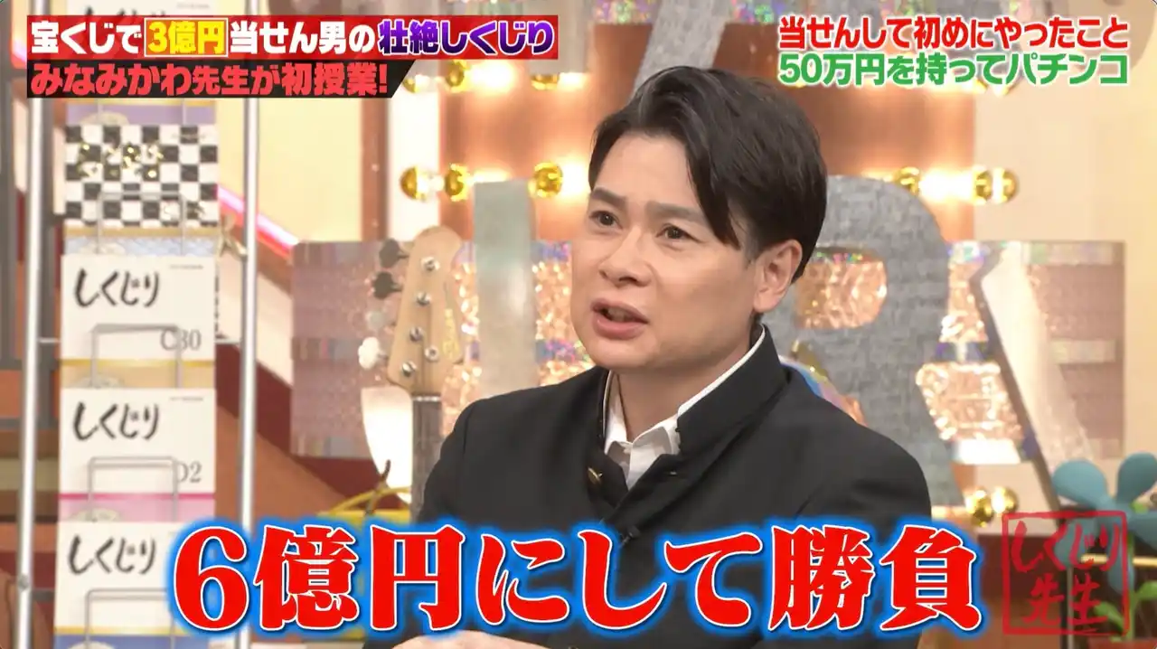 今回教材となったのは、愛知県で自動車エンジニアとして働いていた当時38歳独身の久慈六郎さん。ごく普通のワンルーム暮らし、月給27万円の生活から、何気なく購入したロト6で1等3億2000万円を当せんしたことで久慈さんの人生が一変します。冒頭では、久慈さんがやらかした「女性に貢いで3億2000万円使い果たす」という壮絶なしくじりが明かされ、スタジオは「えー!?」「バカじゃん」と驚愕。授業では宝くじで大金を手に入れた久慈さんが“3億円を女性に貢ぎ切る”までの実録エピソードを紹介しました。 |