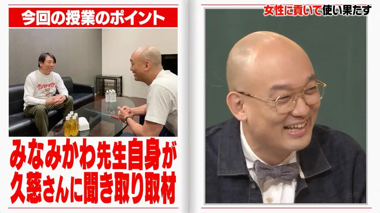 7月11日(金)の放送回では、ピン芸人・みなみかわさんが番組初登場にして初登壇。宝くじで一気に大金を手にした男性の壮絶なしくじりを教材に、「お金の魔力に踊らされた男のしくじりストーリー」と題した授業を行いました。 |