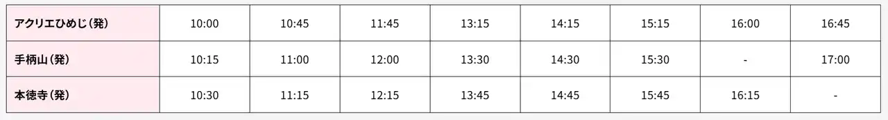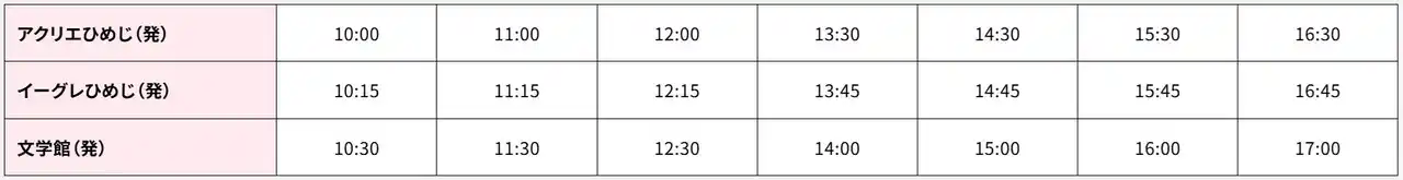 姫CON2026当日は、以下の2ルートで無料ループバスを運行。各撮影エリアでスムーズに撮影が可能です。 |
