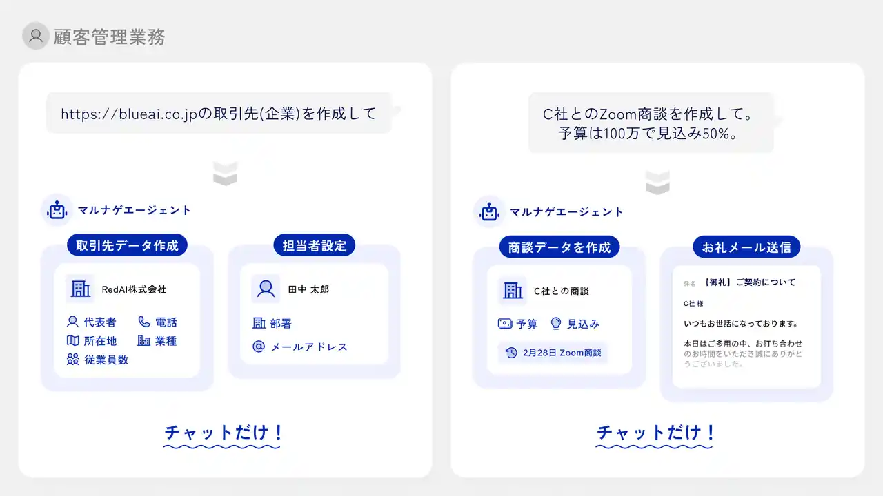 顧客管理業務も「商談作成とお礼メール送信して」とチャットするだけ |