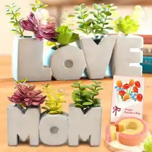 お手入れ不要な多肉のフェイクグリーンがついていて、植物を育てるのが苦手なお母さんでも安心です。 |