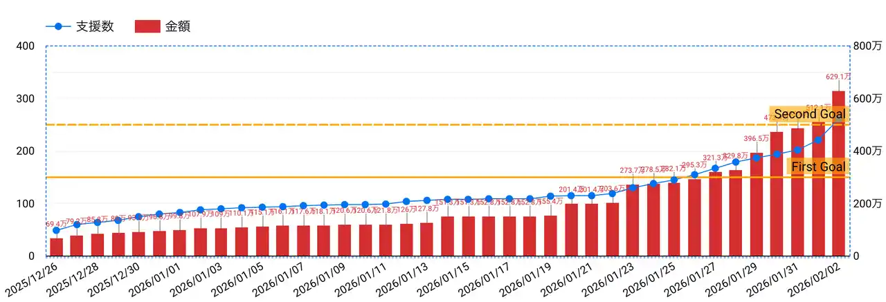 先日実施したクラウドファンディングプロジェクトにて、多くのファン・サポーターの皆様からのご支援を受け、目標を達成しました。支援者の皆様には多大なる温かいご支援を頂き、深く御礼を申し上げます。 |