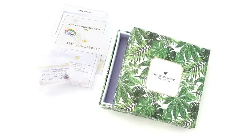 | 店名の由来「MALULANI」とは、「神に守られた」という意味のハワイ語。「MALULANI」という文字を刻み込んだアイテムを組み込み、「神のご加護がありますように」という祈りを託しています。 | |||||||||||||||