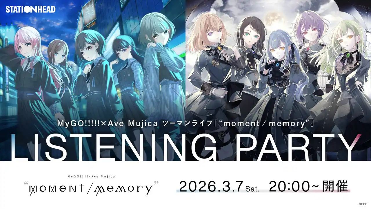 2026年3月1日(日) MyGO!!!!!×Ave Mujica ツーマンライブ「“moment / memory”」の開催を記念して、Stationheadリスニングパーティの開催が決定しました。 |