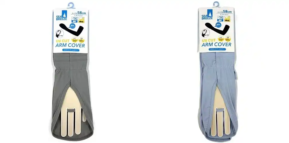 人気ブランド「シーブリーズ」とコラボレーションしたミトンタイプのアームカバー。紫外線遮蔽率99%(UPF50+)という高い遮蔽率に加え、吸水速乾性とひんやりとした肌当たりで、夏の暑い日も快適に過ごせます 。手の甲までしっかりカバーできる構造ながら、腕時計スリットや指かけループを備えており、機能性と使い勝手を両立。 |