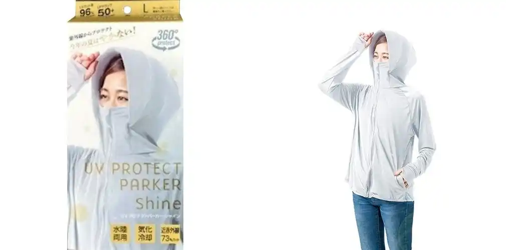 独自開発の暑さ対策生地を使用した涼感パーカー 。絶対に日焼けしたくない方へ向けた1枚で上半身をオールカバーできる設計が特徴です。髪を通せるホールや、手袋代わりになる親指ホール、操作しやすいファスナー紐など細部まで充実 。さらに、座った際も生地の巻き込みがなくスッキリとしたシルエットを保ち、機能性と快適さを徹底追求しています 。 |