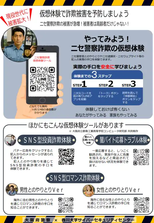 官学連携による「ニセ警察詐欺、SNS型投資・ロマンス詐欺等仮想体験ツール」の開発 |