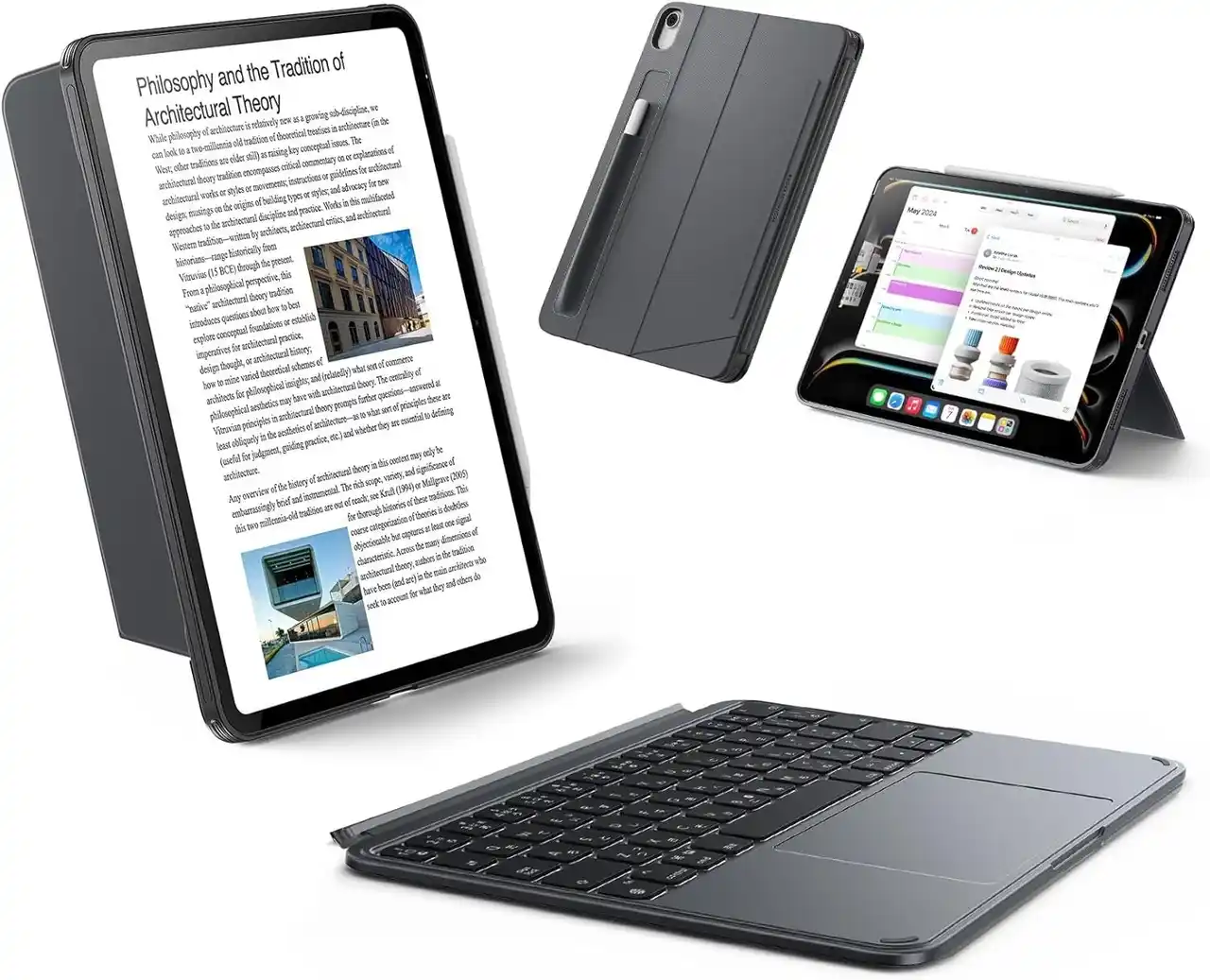 ESR Flip マグネットケース(スタイラスホルダー)は、5つの使用モードに対応した多機能ケースです。読書や動画視聴、執筆、FaceTime通話、冷蔵庫など、さまざまなシーンで活躍します。角度調整が可能な設計により、使用スタイルに合わせて最適な角度を提供し、快適な作業環境を実現します。安定性にも優れ、広い接地面を持つスタンド機構で、滑らずにしっかりと固定できます。さらに、Apple Pencil用のスタイラスホルダーが搭載されており、収納や充電が簡単で、いつでもスムーズに使用できます。 |