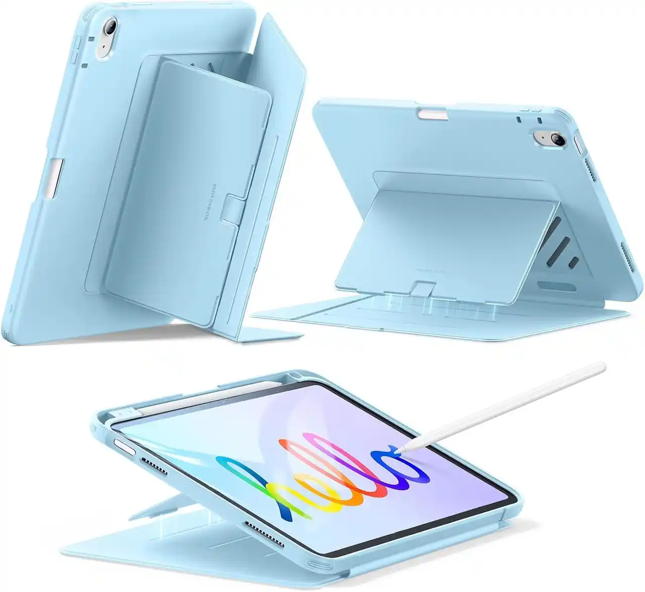 ESR Shift マグネットケースは、iPad Proをノートパソコンのように活用できる多機能カバーです。最大の特徴は、マグネットで簡単に取り外し可能なキーボード設計で、縦置き・横置きスタンドに対応し、9段階の角度調整が可能です。PencilやUSB-Cを完全対応し、Shiftシリースらしいブルー仕上げで、動画視聴やタイピング作業を快適に切り替えられます。軽量ながら耐久性が高く、iPadをしっかり保護します。 |