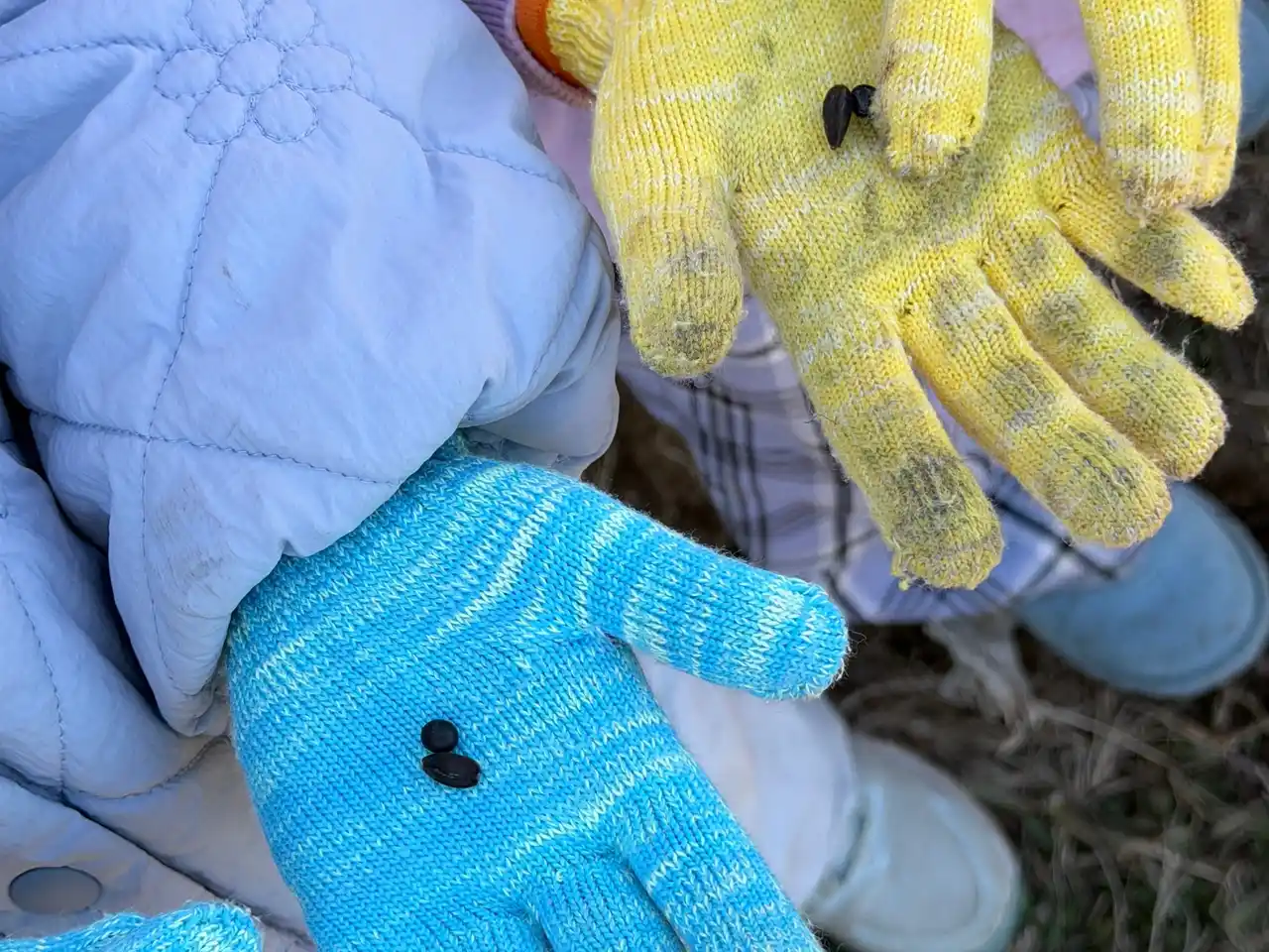 「なんの種でしょう?」小さな種が、子どもたちの目を輝かせました。 |
