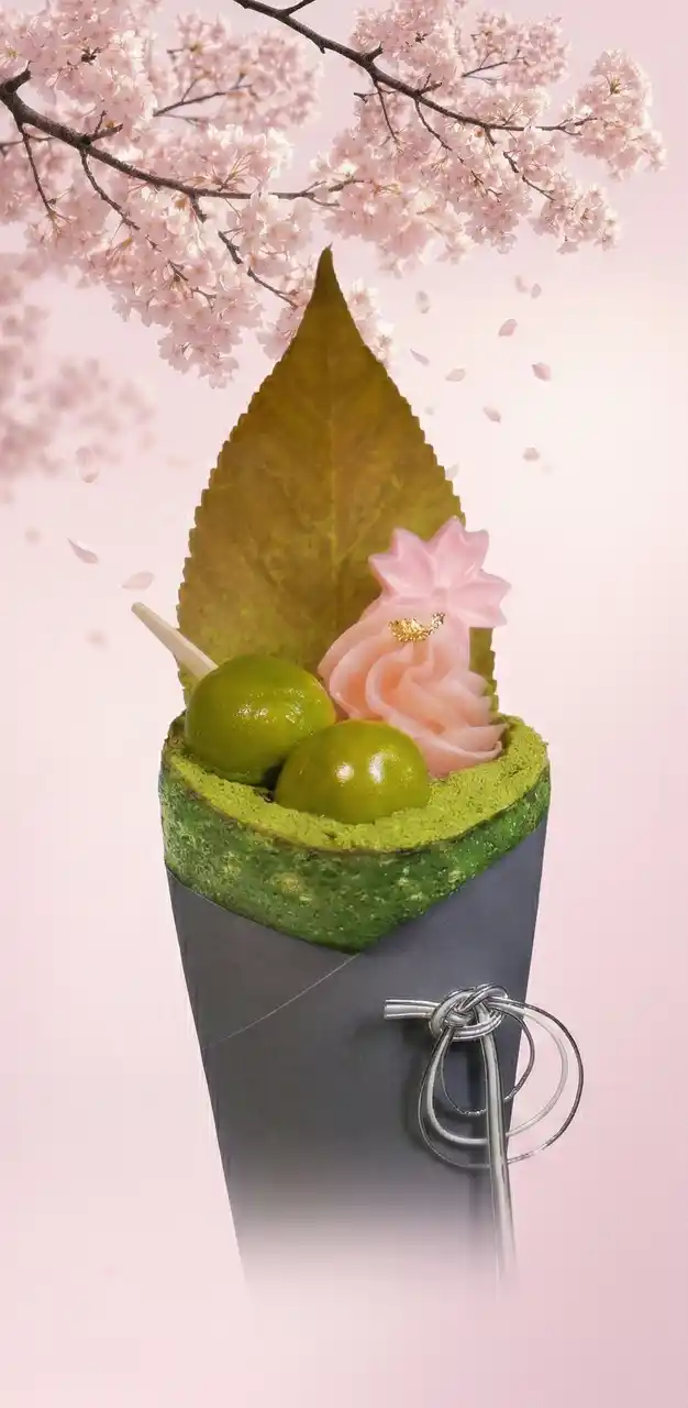 和のハーモニー: 濃厚な黒ゴマペーストのコクと、さくらの葉の塩漬けがアクセントとなり、抹茶の旨みを引き立てます。 |