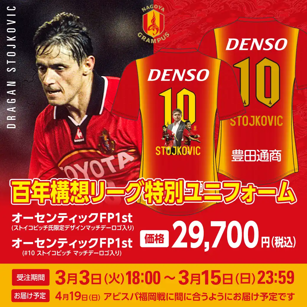 ストイコビッチ氏の来場を記念して、スペシャルデザインユニフォームを受注販売いたします! |