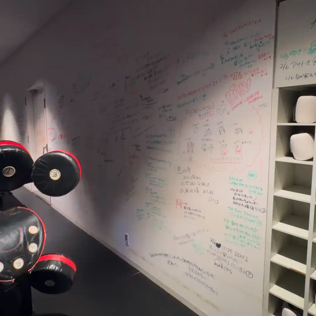スタジオ内の壁面には、メンバー様やパフォーマーが直接メッセージを記入できる企画を実施。閉館に際し、多くの惜別の声や感謝のメッセージが寄せられ、スタジオへの想いが詰まった空間となりました。 |