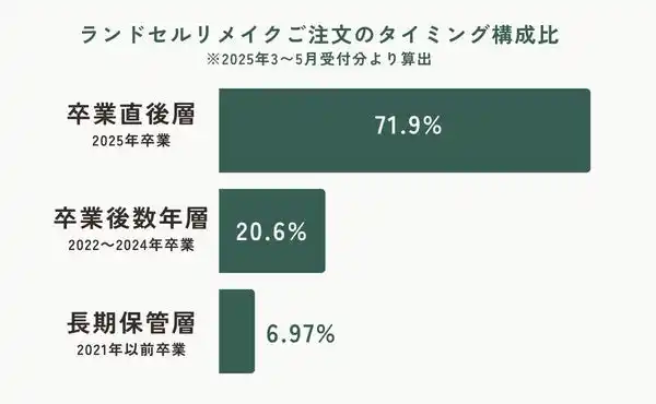 | 2025年3月~5月に受付したランドセルリメイクでは、2025年3月ご卒業の方が全体の71.9%と最も高い割合となりました。 | |||||||||||||||