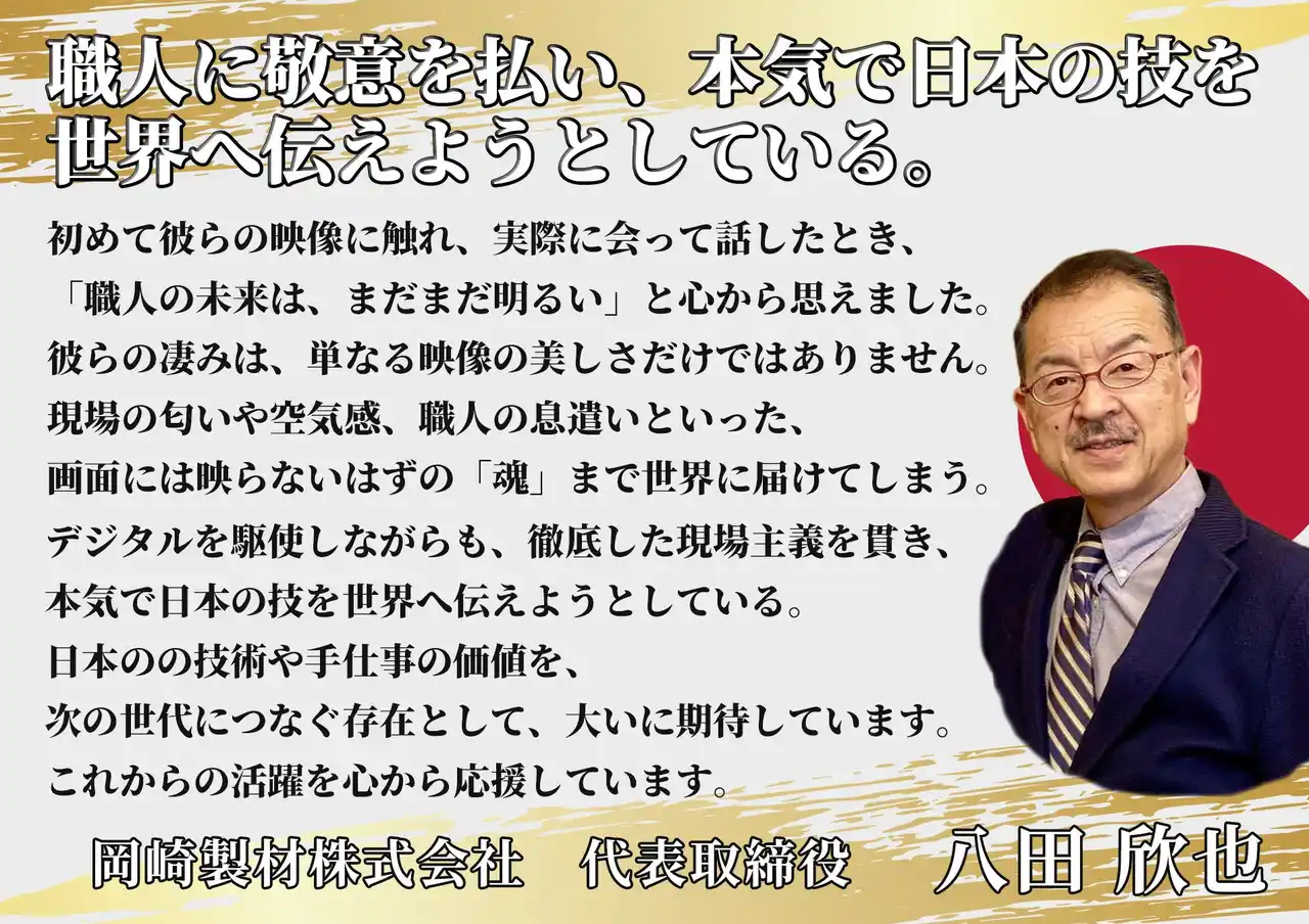 販路は、日本だけではありませんでした。 日本の職人がつくるものを、本気で「欲しい」と思っている人は、海外にもたくさんいる。映像は、すでに国境を越えて価値を伝えていました。 |