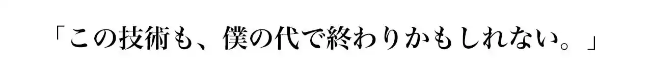 | 日本では、何百年と受け継がれてきた技術が、静かに途絶えようとしています。 | |||