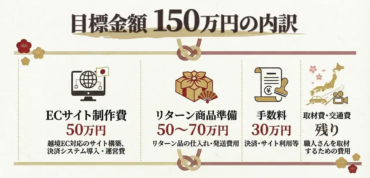 【目標金額:150万円】 資金の内訳は以下を想定しています。 |
