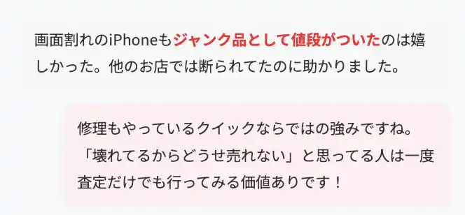 画面割れや背面破損があるAndroidスマホについても、秋葉原の修理パーツ需要と連動している店舗では、他エリアでは「買取不可」とされるようなジャンク品でも数千円~数万円の値がつく実態が明らかになりました。 |